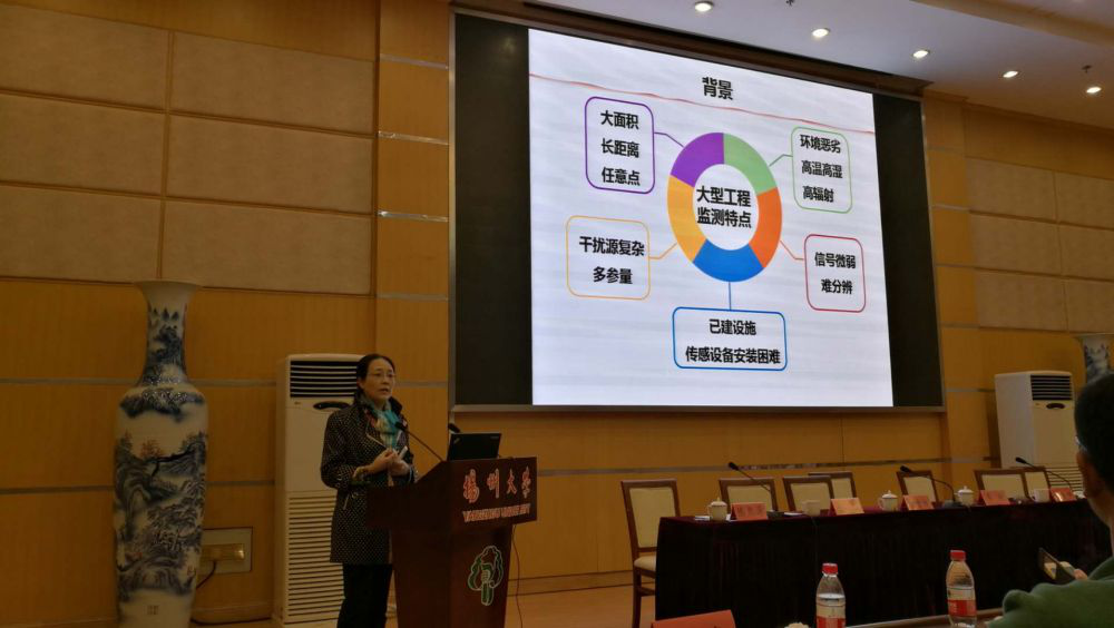 11月4日上午,張旭蘋教授應邀作了題為“大型工程結構分布式健康監測技術”的大會特邀報告,現場反響熱烈。張旭蘋教授在報告中介紹了連續分布式光纖傳感技術原理以及在大型工程結構健康監測中的應用,并結合高鐵輪軌結構健康監測、城市地下聲紋監測、智能電網監測以及埋地油氣管線等具體工程應用進行講解。